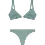 Elevate your style with the Amelia Set from the Sparkle Collection. This set features a dazzling baby blue bralette, enhanced with glitter and a striking golden circle accessory. Designed for versatility, it's ideal for adding a touch of glamour to shirts, blouses, and t-shirts. Whether you're sunbathing by the sea or heading out for an evening adventure, the Amelia Set promises to be a go-to in your wardrobe.