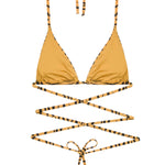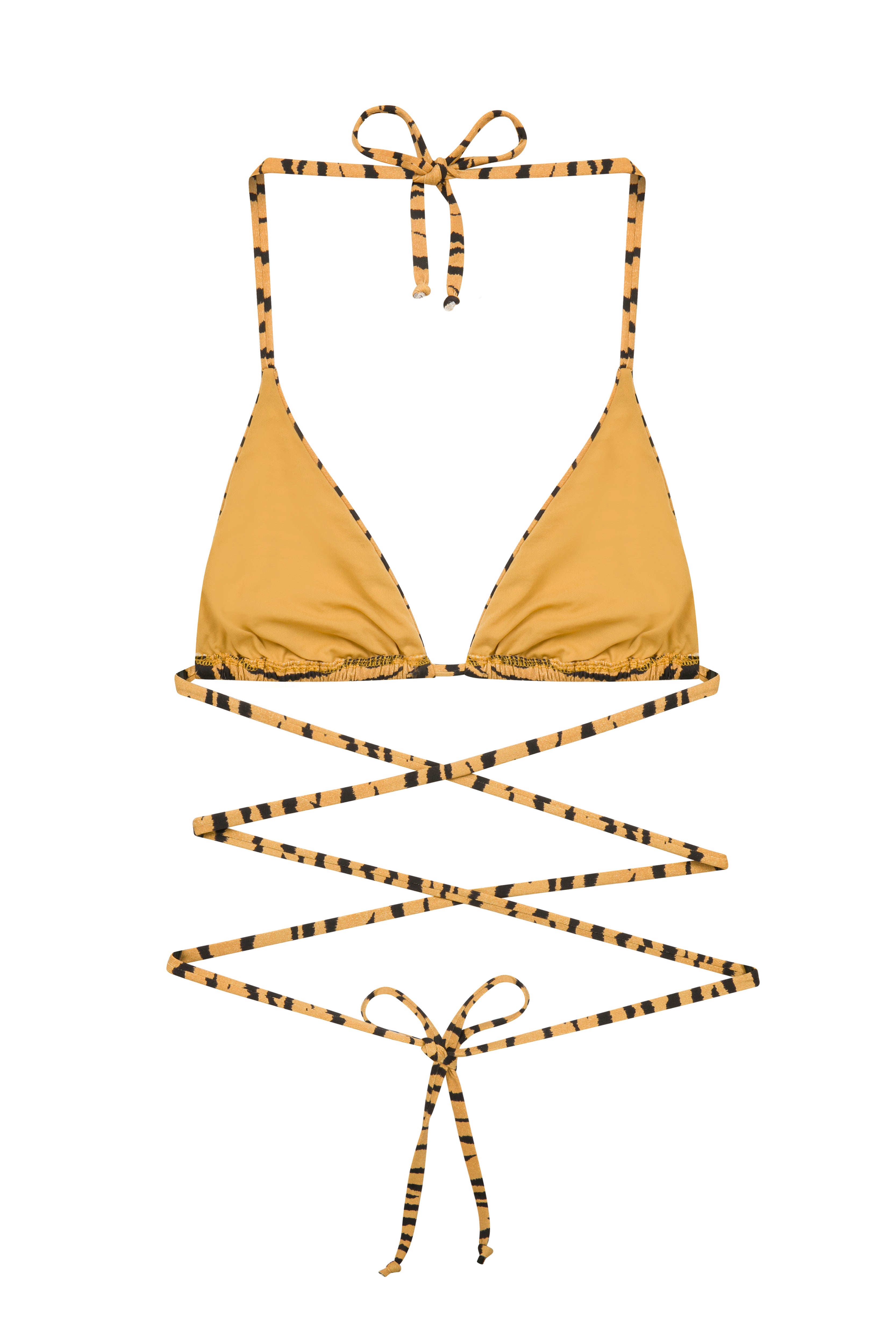 The top is a mesmerizing wrap of wilderness and beauty, capturing the free-spirited essence that Piko possessed. Its intricate design crisscrosses with an elegant finesse, creating an alluring silhouette that's both fierce and gentle in its aesthetic.