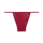 The "Chaotic Good" bikini bottom combines style and comfort, featuring sleek ties for a chic look. It is crafted in a vivid pink shade enriched with a subtle, enchanting pattern that whispers tales of wild hearts and carefree days under the sun. This piece is an invitation to embrace your free spirit and unique style.