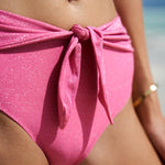 The 'Goddess of the Moon' bottom is a celestial tribute, woven from the whispers of night skies. This pink shimmering piece, with a side tie that evokes the crescent moon's curve, is for those who find solace in the silent glow of the moonlit world. It’s a design that’s both enchanting and practical, promising comfort that aligns with the rhythms of the tides and the heart.
