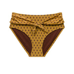 The 'She's Whiskey in a Teacup' bottom is a high-waisted affair that marries comfort with retro flair. The polka dots sprinkle across the warm, cinnamon base like drops of amber spirits, creating a look that’s as comfortable in a lounge as it is luxurious in solitude. High-cut legs and a full-coverage back ensure that style and substance go hand in hand, making it the perfect piece for the woman with a spirited heart and timeless style.