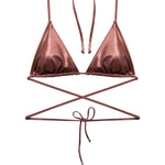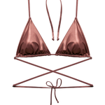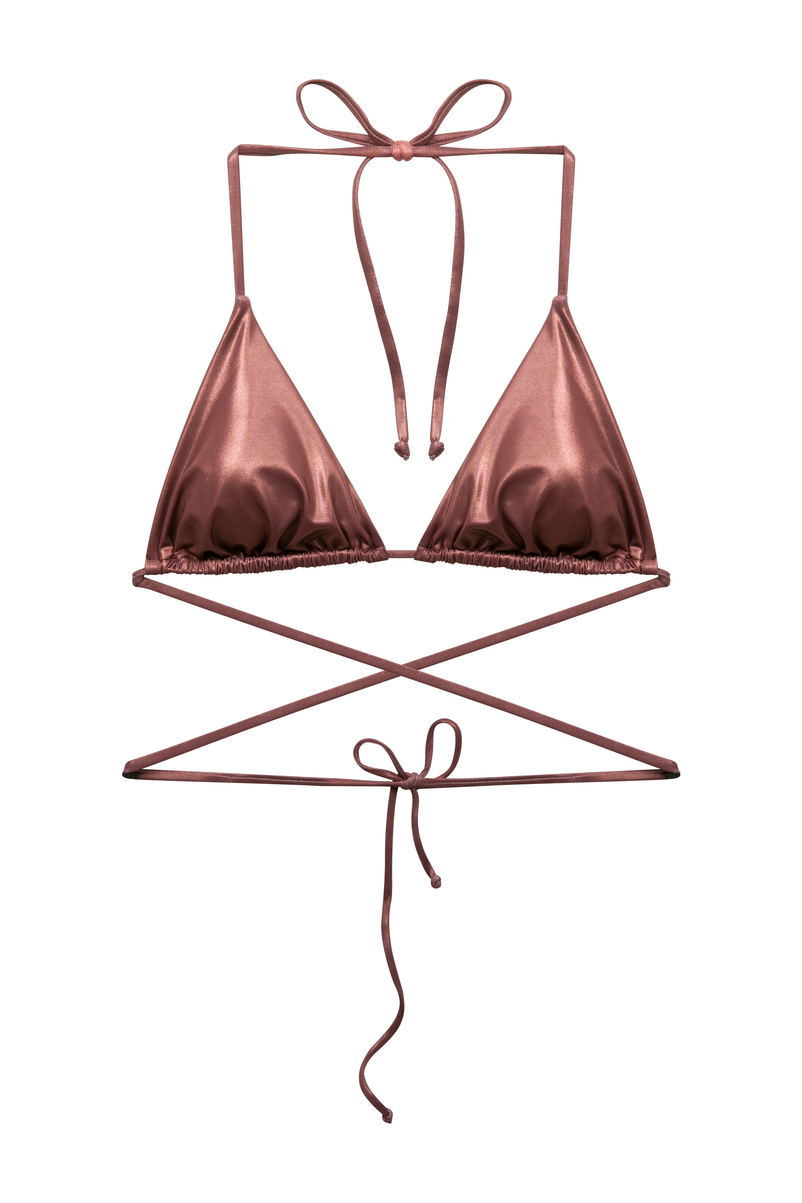 Sizzle on the sands in this 'Too Hot to Handle' bikini top. Shimmering with a sultry, metallic hue, its delicate straps criss-cross around the body, offering a customizable fit that's both supportive and stunning. It's the perfect piece to highlight your sun-kissed glow, crafted for the daring.