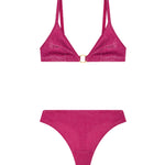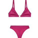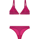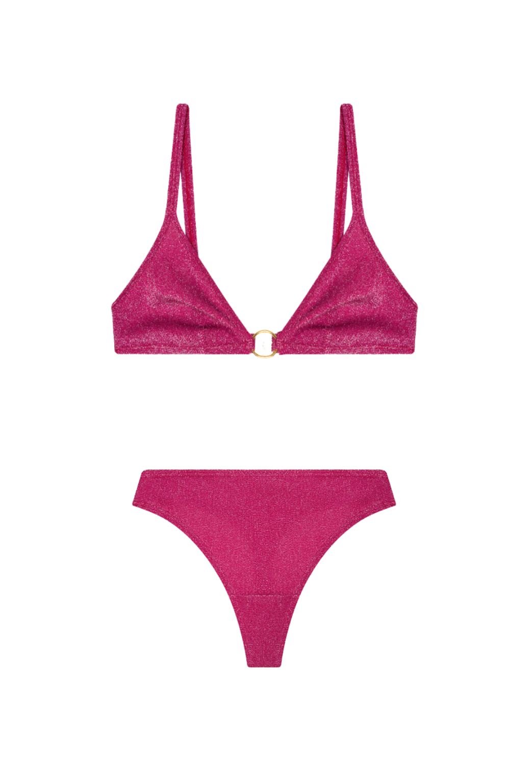 Discover the versatility of the Madonna Set from Fifth Sense Lingerie's Sparkle Collection, a luxurious ensemble that doubles as both elegant lingerie and chic sunbathing attire. Featuring a pink top with a golden circle accessory and a matching bottom, this set is perfect for those who appreciate multifunctional style.
