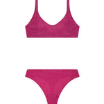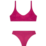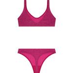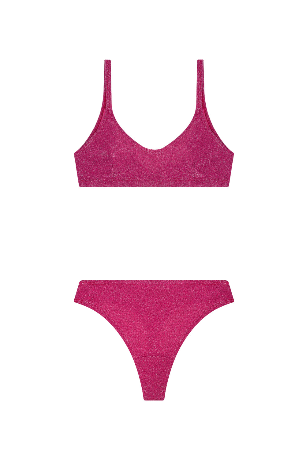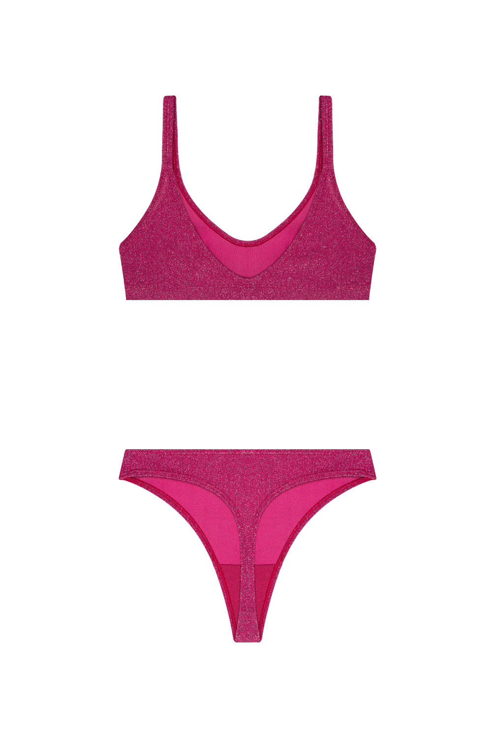 Elevate your style with the Marilyn Set from the Sparkle Collection. This set features a dazzling pink bralette, enhanced with glitter and a striking golden circle accessory. Designed for versatility, it's ideal for adding a touch of glamour to shirts, blouses, and t-shirts. Whether you're sunbathing by the sea or heading out for an evening adventure, the Marilyn Set promises to be a go-to in your wardrobe.