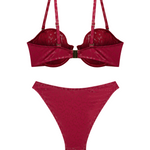 The Lolita set is a testament to timeless beauty, blending rich textures with a striking red palette. The ensemble is designed to provide an elegant fit that flatters and feels comfortable throughout the day. This set is ideal for the fashion-forward individual looking to combine classic sophistication with a hint of playfulness in their beachwear collection.