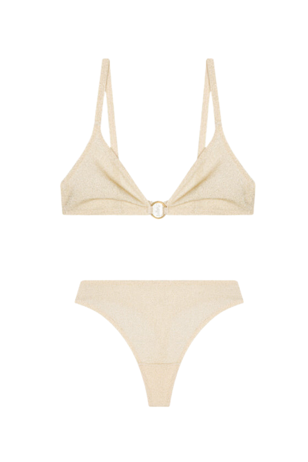 This set includes a bralette adorned with a shimmering gold circle detail, perfect for sunbathing and adding sparkle to your everyday attire. Mix and match this versatile set under tees, jackets, or shirts, or let it shine on your memorable night outs with its captivating design.