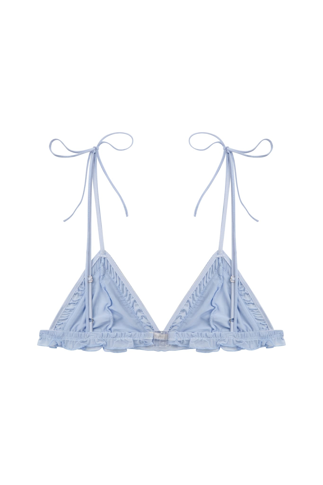 Hafifliğin ve zarafetin buluştuğu bu bralet ile kendini gün boyu özgür hisset. Romantik fırfır detayları ve pastel mavi tonu sayesinde hem konforu hem şıklığı bir arada yaşa.